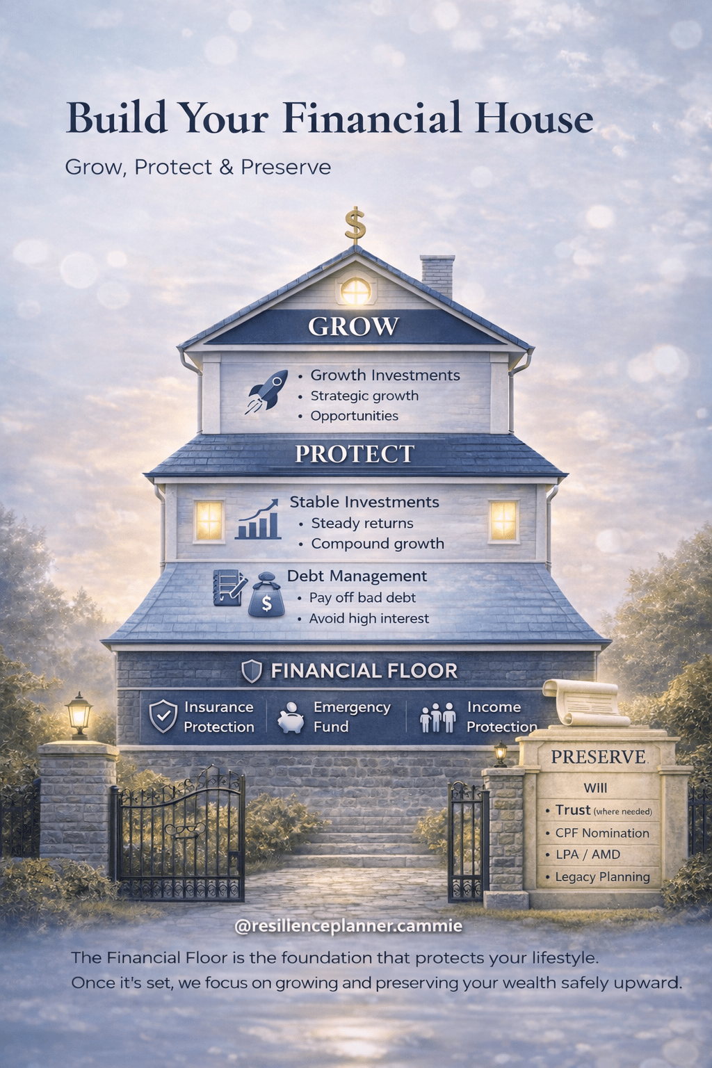 A visual structure that helps you see which part of your financial life needs attention right now — foundation first, growth after. This is the structure we use to decide what deserves your attention first — foundation before growth.